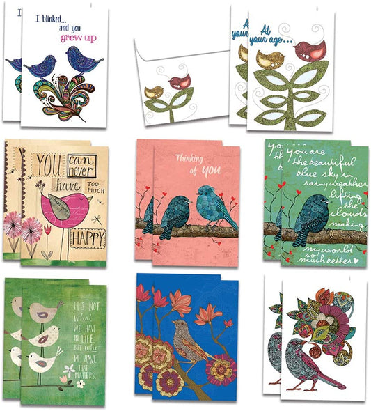 Birds of a Whimsical Feather All Occasion Card Assorted 16 pack