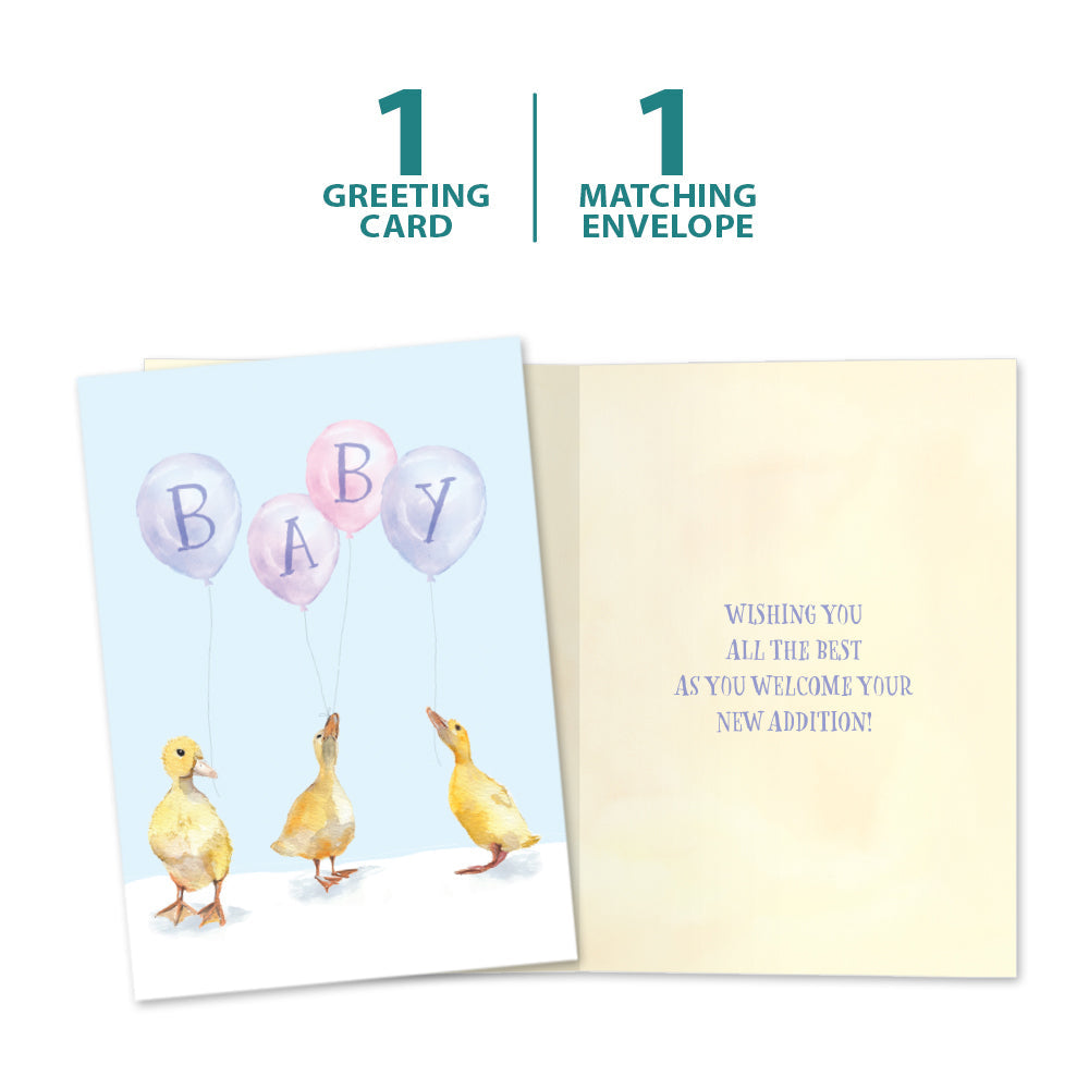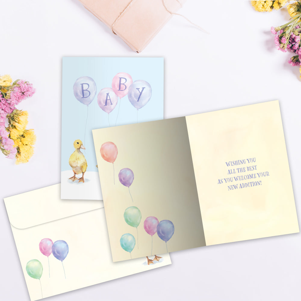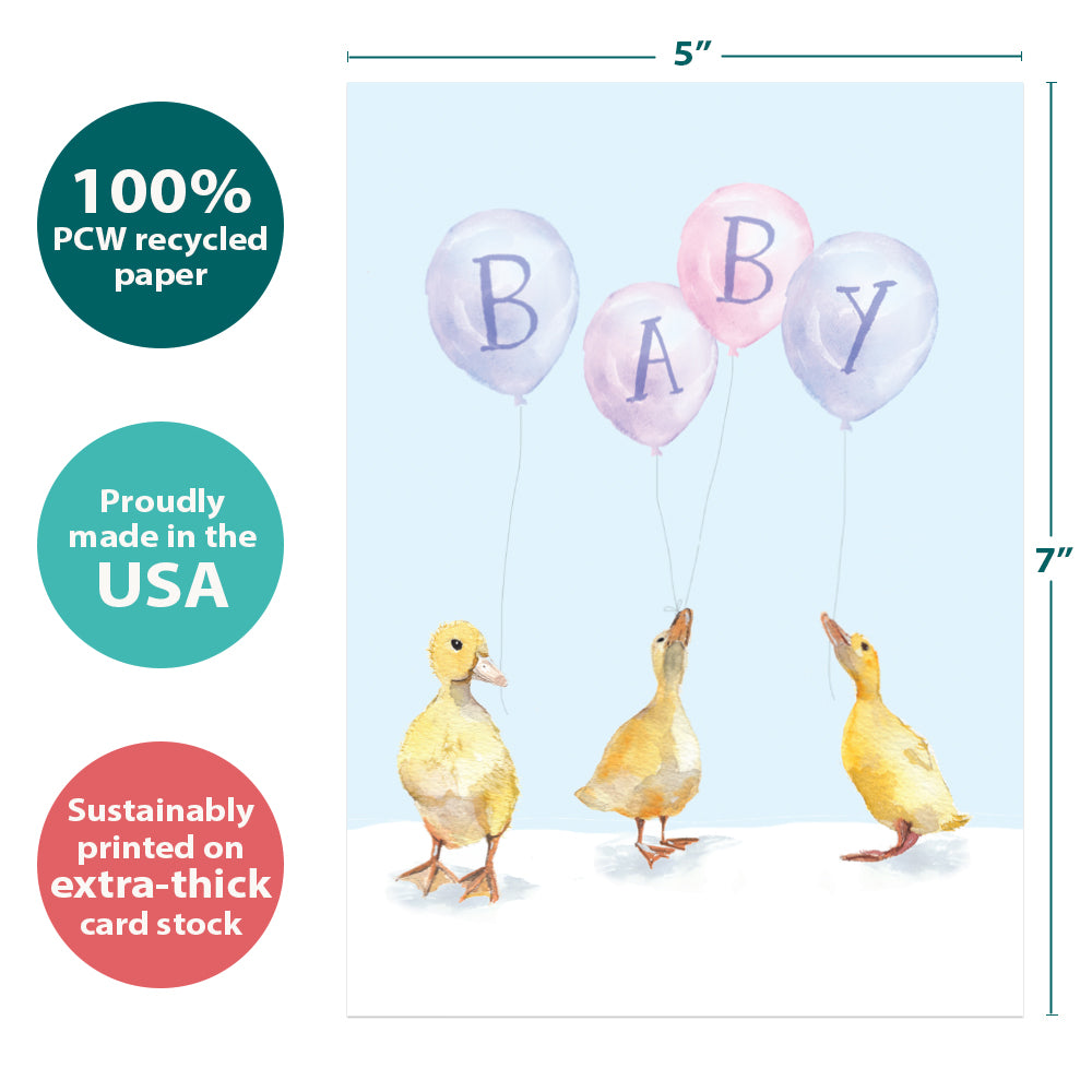 This New Baby card set shares the message "Baby" on the cover, and on the inside reads "Wishing you all the best as you welcome your new addition!". It features art by Cami Monet and includes one 5 x 7 greeting card with a matching ARTvelope (all our 5 x 7 envelopes are designed to match the greeting card cover art). Printing powered by solar energy. 100% Post-consumer recycled. Proudly Made in the USA