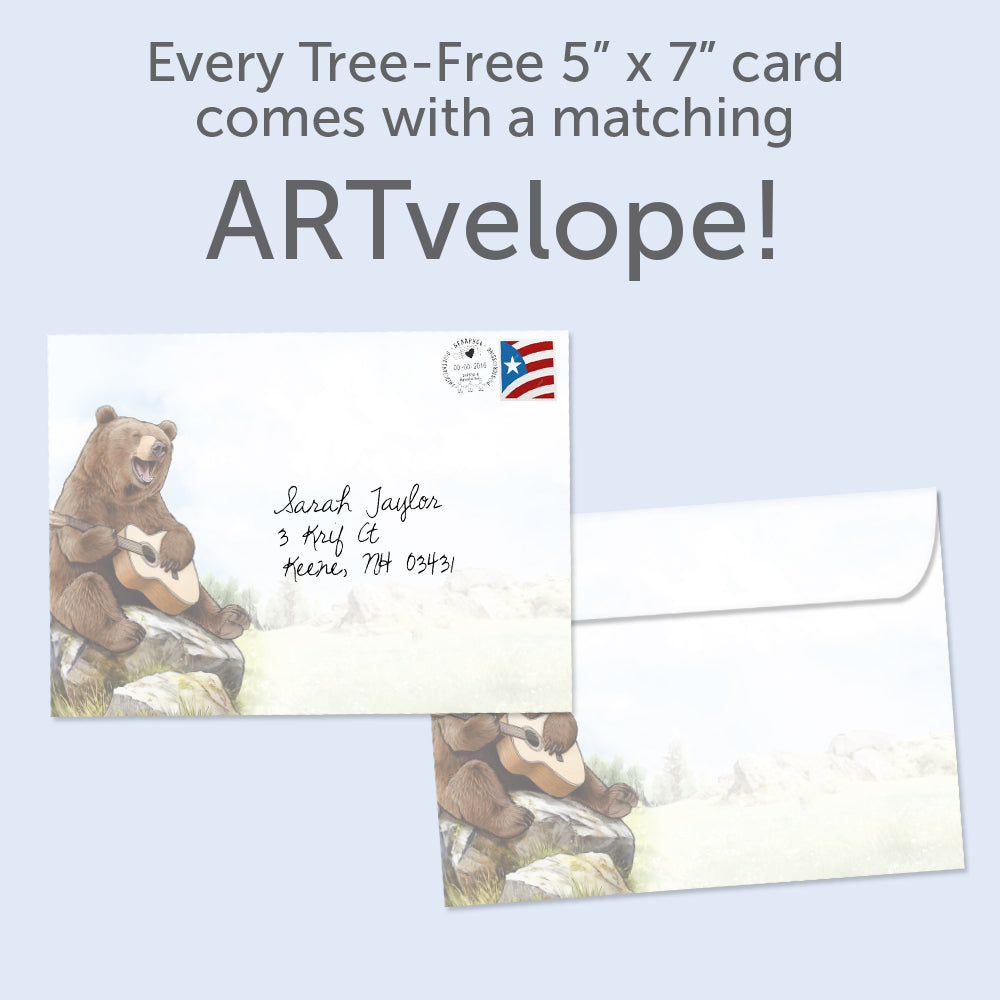 ". It features art by Shawn Braley and includes six 5 x 7 greeting cards with matching ARTvelopes (all our 5 x 7 envelopes are designed to match the greeting card cover art). Printing powered by solar energy. 100% Post-consumer recycled. Proudly Made in the USA
