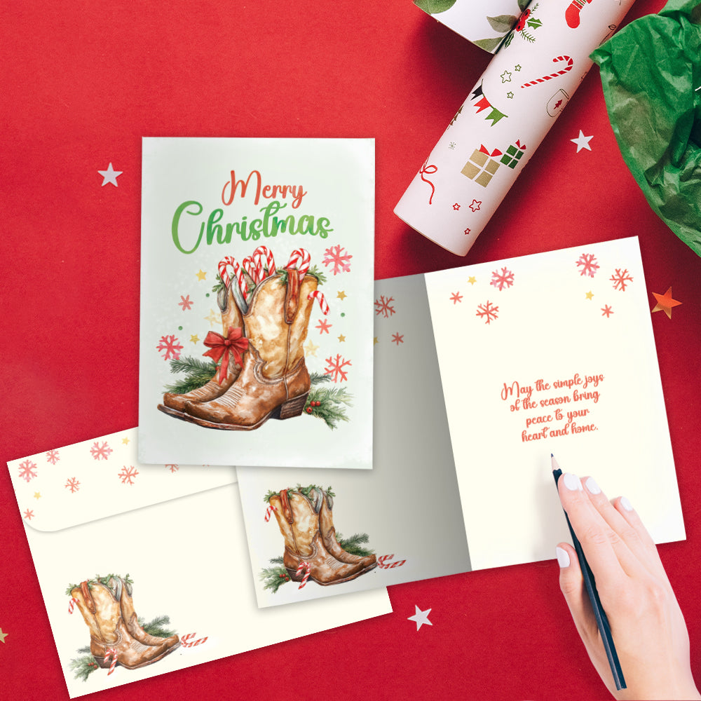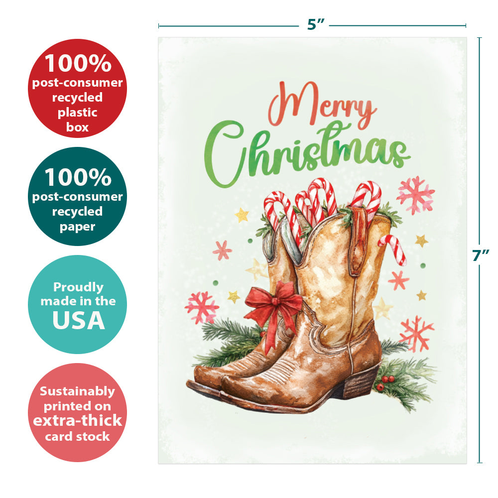 This Christmas card set shares the message "Merry Christmas" on the cover, and on the inside reads "May the simple joys of the season bring peace to your heart and home". It features art by Sarah Taylor and includes sixteen 5 x 7 greeting cards with matching ARTvelopes (all our 5 x 7 envelopes are designed to match the greeting card cover art). Printing powered by solar energy. 100% Post-consumer recycled. Proudly Made in the USA