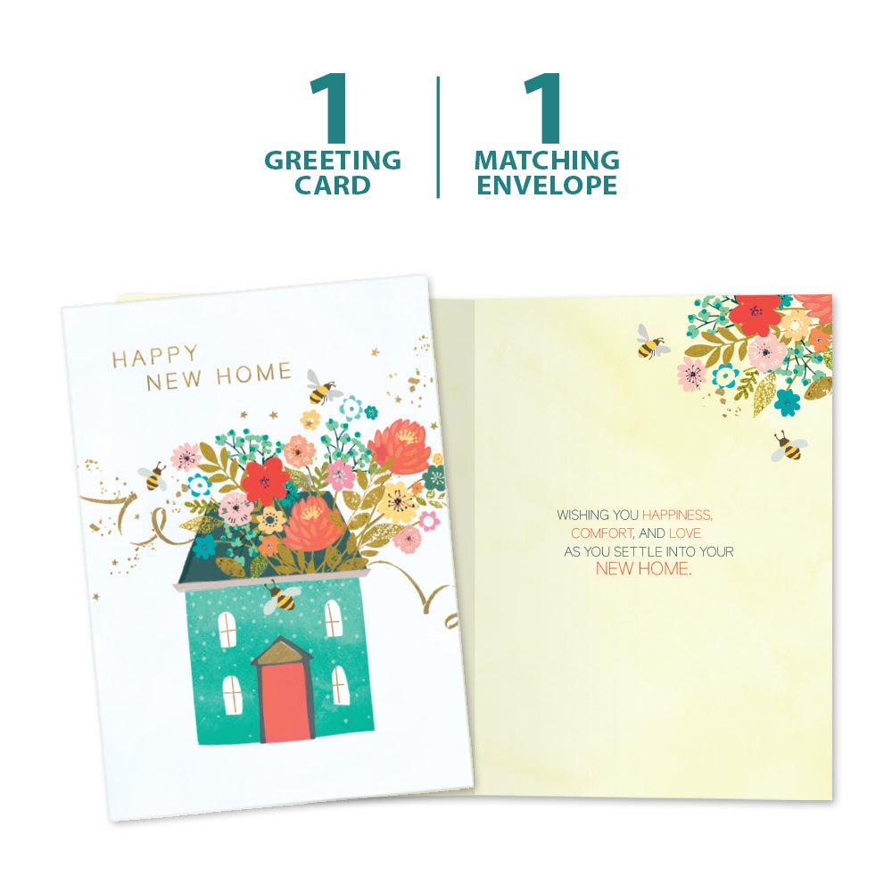 This New Home card set shares the message "Happy new home" on the cover, and on the inside reads "Wishing you happiness, comfort, and love as you settle into your new home.". It features art by Hammond Gower Publications and includes one 5 x 7 greeting card with a matching ARTvelope (all our 5 x 7 envelopes are designed to match the greeting card cover art). Printing powered by solar energy. 100% Post-consumer recycled. Proudly Made in the USA