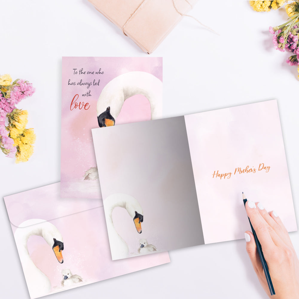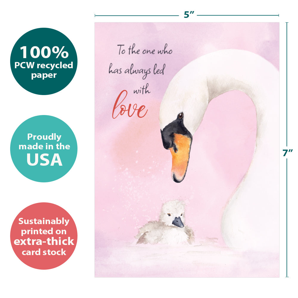 This Mother's Day card set shares the message "To the one who has always led with love" on the cover, and on the inside reads "Happy Mother's Day". It features art by Maria Belen Galizzi and includes four 5 x 7 greeting cards with matching ARTvelopes (all our 5 x 7 envelopes are designed to match the greeting card cover art). Printing powered by solar energy. 100% Post-consumer recycled. Proudly Made in the USA