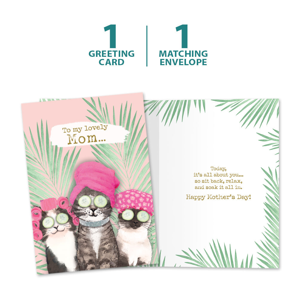 This Mother's Day card set shares the message "To my lovely mom..." on the cover, and on the inside reads "Today, it’s all about you...so sit back, relax, and soak it all in. Happy Mother’s Day!". It features art by Hammond Gower Publications and includes one 5 x 7 greeting card with a matching ARTvelope (all our 5 x 7 envelopes are designed to match the greeting card cover art). Printing powered by solar energy. 100% Post-consumer recycled. Proudly Made in the USA