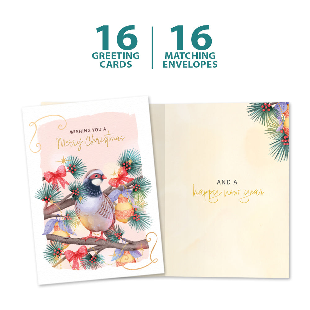 This Christmas card set shares the message "Wishing you a merry Christmas" on the cover, and on the inside reads "And a happy new year". It features art by Andreea Schmidt and includes sixteen 5 x 7 greeting cards with matching ARTvelopes (all our 5 x 7 envelopes are designed to match the greeting card cover art). Printing powered by solar energy. 100% Post-consumer recycled. Proudly Made in the USA