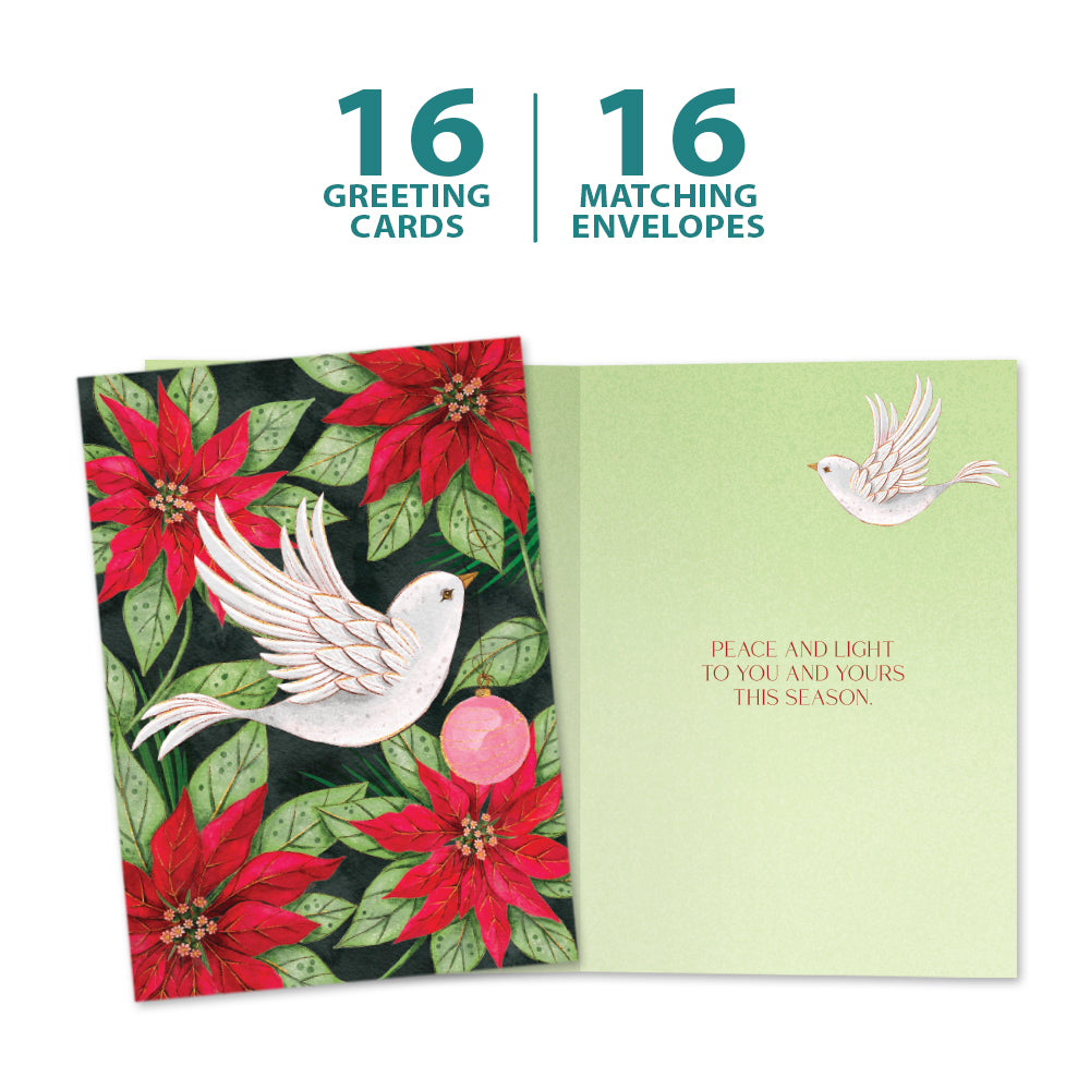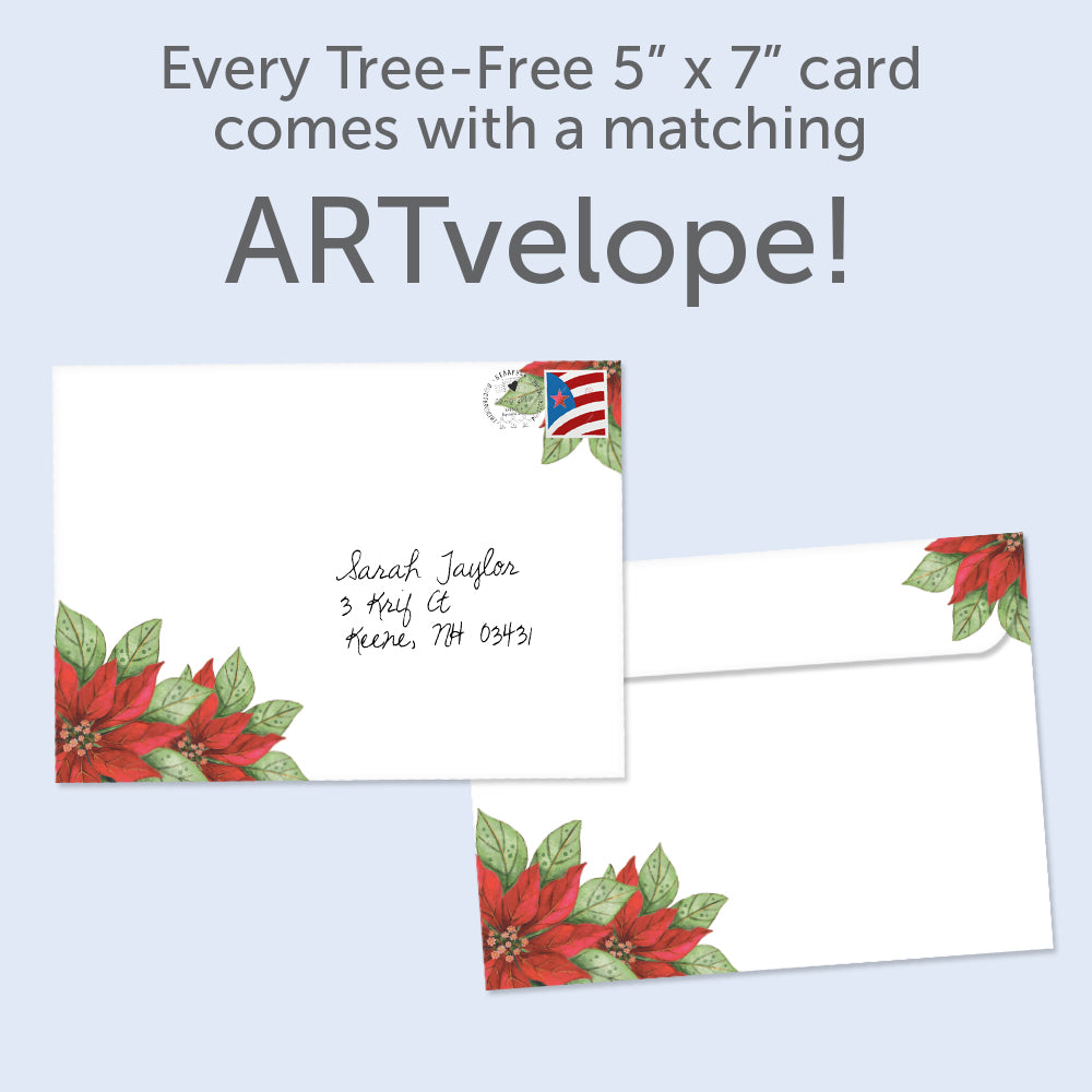 This Holiday card set is blank on the cover, and on the inside reads "Peace and light to you and yours this season". It features art by Andreea Schmidt and includes sixteen 5 x 7 greeting cards with matching ARTvelopes (all our 5 x 7 envelopes are designed to match the greeting card cover art). Printing powered by solar energy. 100% Post-consumer recycled. Proudly Made in the USA