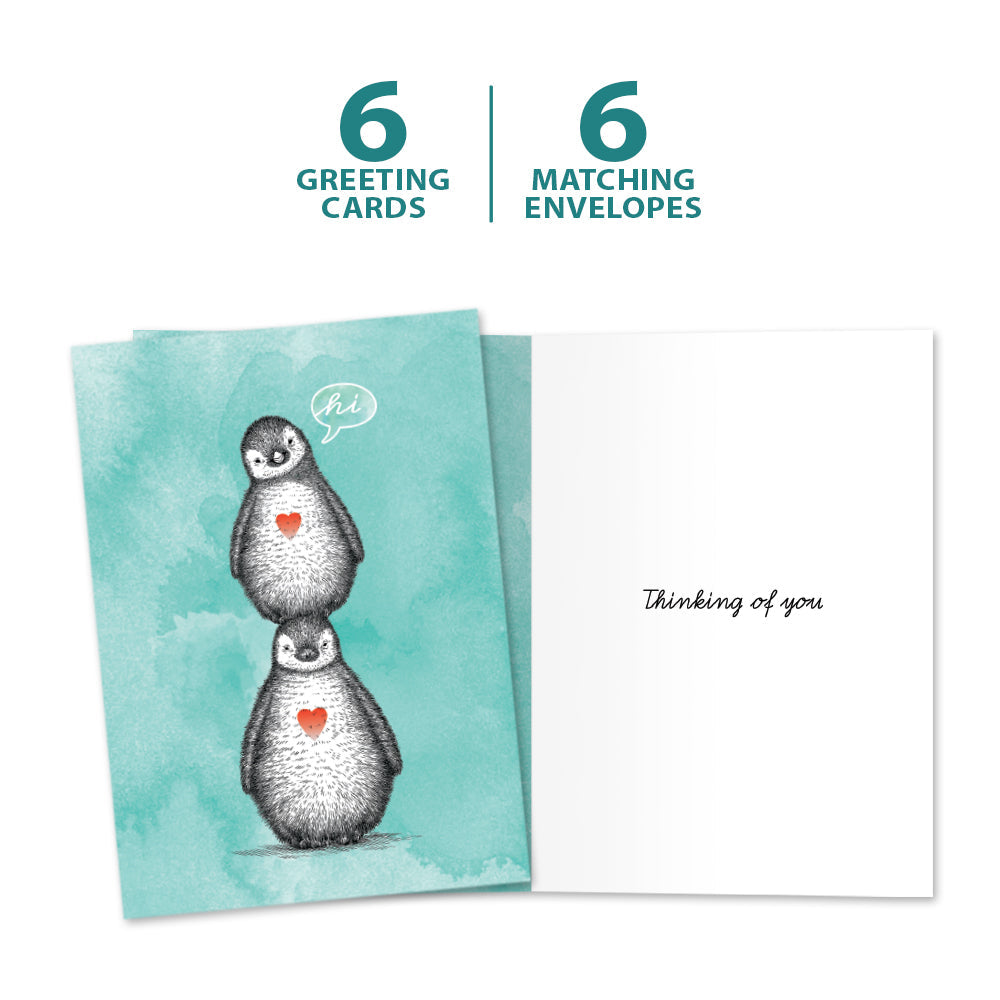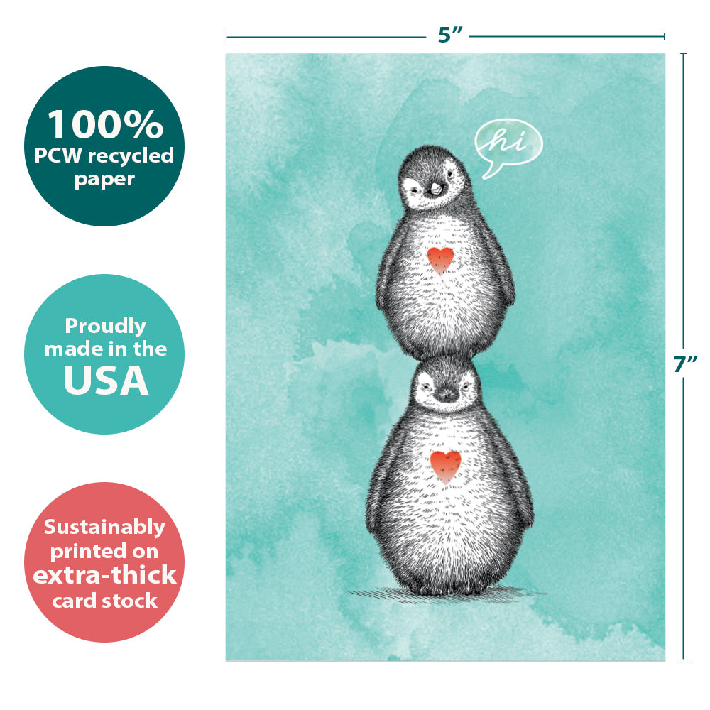 This 5 x 7 Just Because greeting card reads "Hi" on the cover, and on the inside shares the message "Thinking of you". It features art by Tree-Free Greetings, includes a fully printed matching ARTvelope, and is made from 100% post-consumer recycled material. Our printing processes are powered by solar energy and are proudly made in the USA. This is for a retail ready 6 Pack