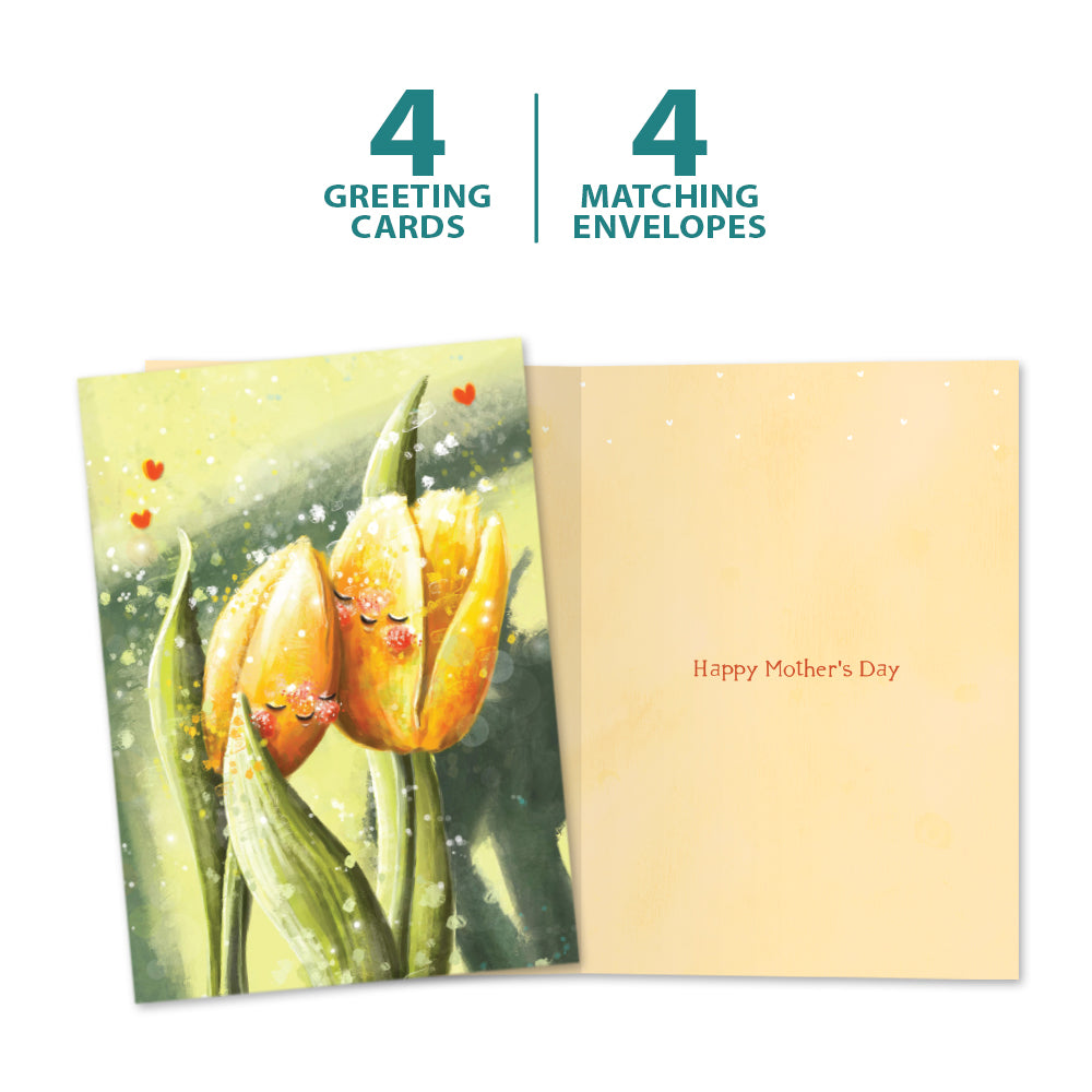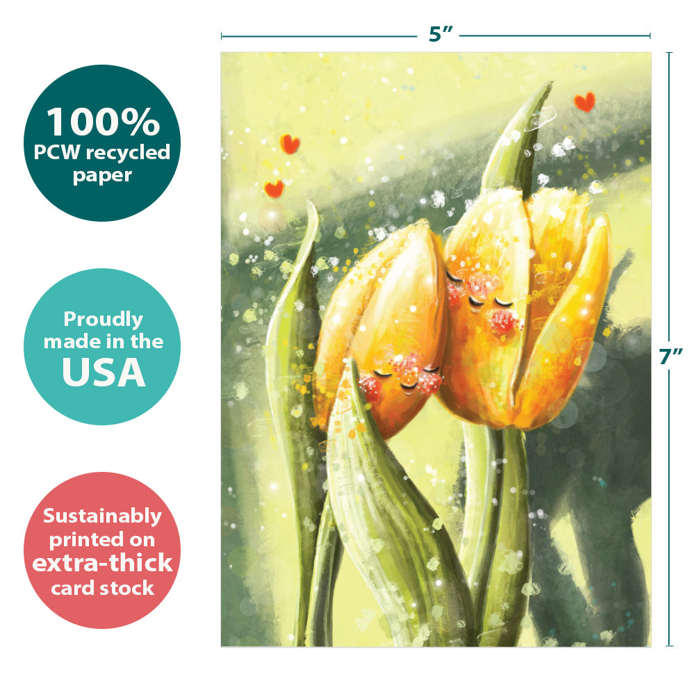 This Mother's Day card set is blank on the cover, and on the inside reads "Happy Mother's Day". It features art by Anna Świetlik-Horodecka and includes four 5 x 7 greeting cards with matching ARTvelopes (all our 5 x 7 envelopes are designed to match the greeting card cover art). Printing powered by solar energy. 100% Post-consumer recycled. Proudly Made in the USA